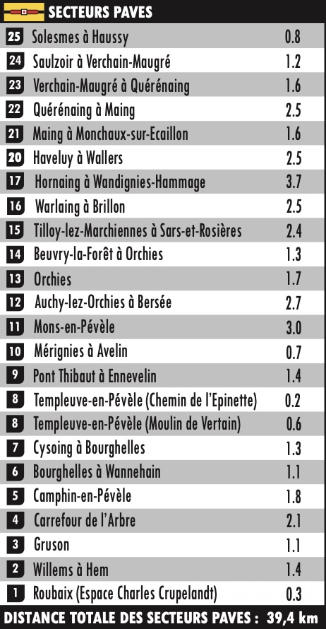 | Sector 5 Camphin-en-Pévèle ★★★★ | 139.1 km | 14:02 | 14:10 | 14:24 |